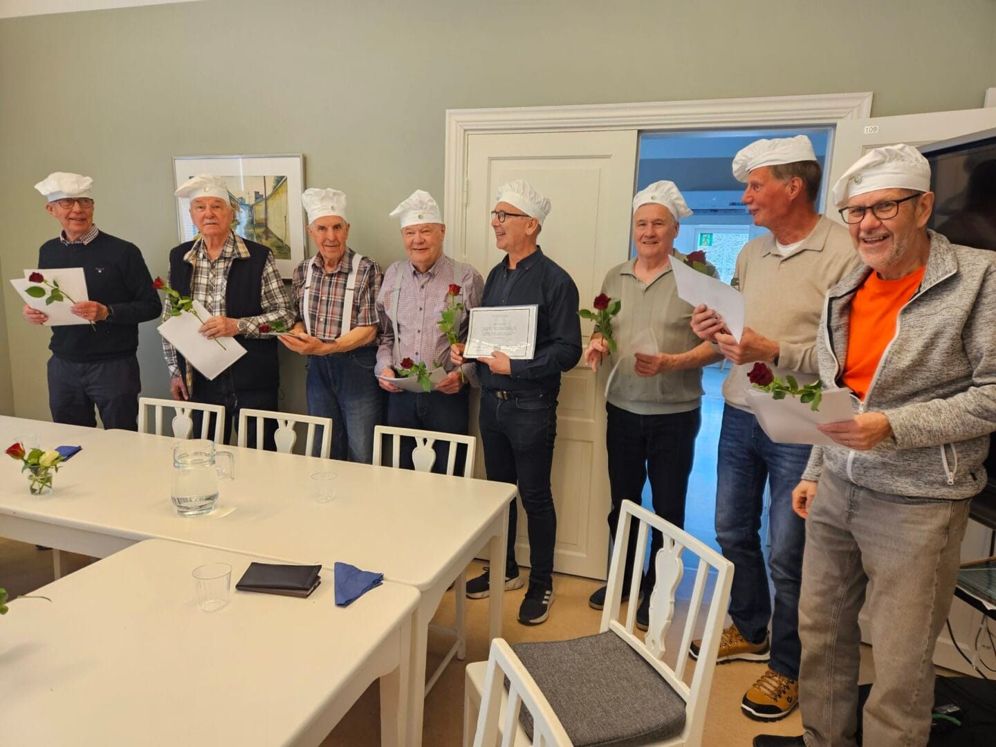 Miesten pilottina toteutettu kokkikerho! Viimeinen kokkailu oli juhlalounas, johon kokit saivat kutsua puolison tai ystävän lounaalle, koska kyseessä oli kevään viimeinen tapaaminen. Kokit saivat päästötodistuksen ja kokkihatut. Tarjolla oli itse savustettua lohta, perunamuusia, salaattia ja jälkiruuaksi kääretorttuleivokset ja kahvi. Kiitos kaikille opettajille; Hannele Kukkonen, Sirpa Vainio, Marita Ahokas, Marja Leivo ja Riitta Rannikko-Prinkkilä ja tietysti meidän hurmaaville kokeille. Kokkailu jatkuu syksyllä 2026!